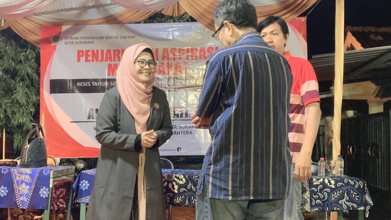 SURABAYAPAGI, Surabaya - Saat melakukan reses, Wakil Ketua Komisi C DPRD Kota Surabaya Aning Rahmawati masih banyak disambati masalah pembangunan infrastruktur penanggulangan banjir di Kota Pahlawan. Salah satunya disambati mulai dari pembangunan saluran di tengah jalan.