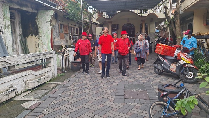 SURABAYAPAGI.COM, Surabaya - Kader-kader PDI Perjuangan Surabaya blusukan ke kampung Peneleh, bertemu warga masyarakat dan mengunjungi rumah kelahiran Bung Karno di Pandean Gang 4 / No. 40. Rumah ini baru selesai dipugar oleh Wali Kota Eri Cahyadi.