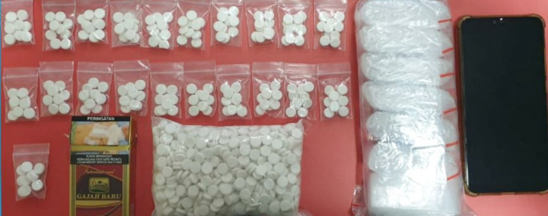 Dari penangkapan tersebut, polisi berhasil menemukan barang bukti berupa 1.210 butir pil koplo merek double L dan satu bungkus rokok bekas berisi 21 poket siap edar berisi pil yang sama. Tersangka sudah membagi ribuan pil tersebut menjadi 10 butir per poketnya.