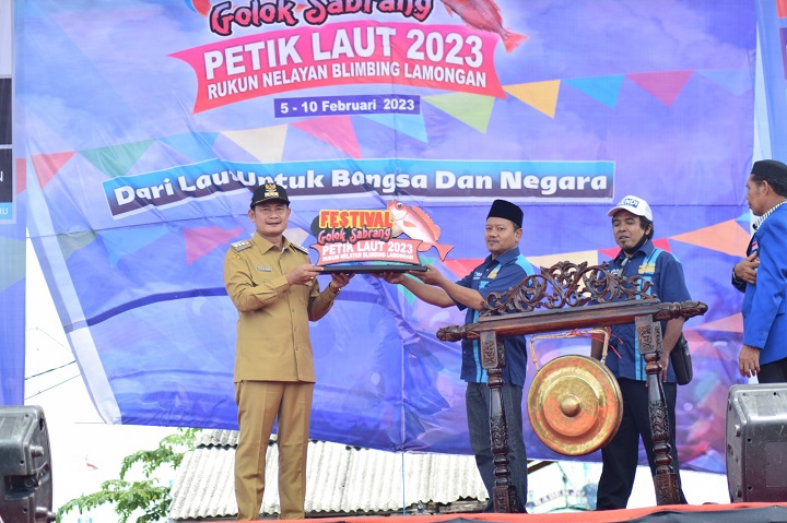 SURABAYAPAGI.COM, Lamongan - Kelompok Rukun Nelayan Blimbing Kecamatan Paciran Kabupaten Lamongan, pada Senin (6/2/2023) menggelar petik laut yang dikemas dalam Festival Golok Sabrang, dengan membagikan ikan Golok Sabrang sebanyak 2.023 ekor kepada masyarakat secara gratis.