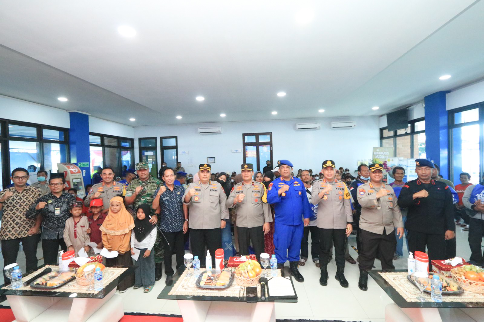 SURABAYAPAGI.COM, Gresik - Wakapolda Jawa Timur Brigjen Pol Slamet Hadi Supraptoyo bersama Pejabat Utama (PJU) Polda Jatim, serta Forkopimda Kabupaten Gresik menggelar kegiatan Jum'at Curhat di Pelabuhan Terminal Penumpang Gresik, Jum'at (10/02/2023).