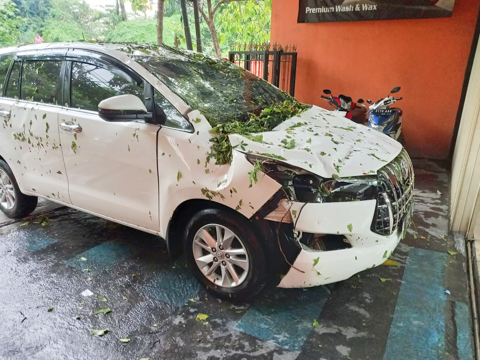 Mobil milik warga yang tertimpa pohon itu dipinggirkan oleh petugas. Kemudian, petugas mengevakuasi dengan cara memotong batang pohon yang tumbang melintang di jalan sehingga tidak mengganggu arus lalu lintas.