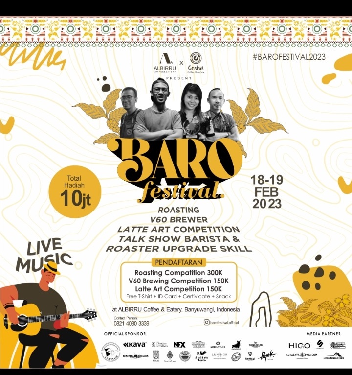 SURABAYAPAGI.COM, Banyuwangi - Kopi tidak sekadar hitam. Untuk sampai pada tahap penyajian, banyak keahlian yang dibutuhkan. Dalam rangka itulah, manajemen Al Birru Coffee dan Eatery menggelar acara BARO Festival.