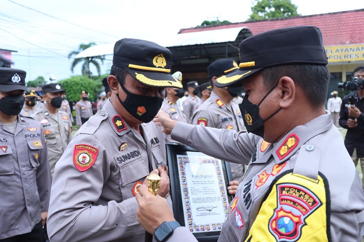 Penghargaan diberikan bertepatan dalam apel pagi Senin (27/2) di halaman Markas Komando Polres Blitar Kota. Pemberian penghargaan yang diserahkan langsung oleh AKBP Argowiyono disaksikan seluruh PJU/Kasat dan anggota peserta apel.