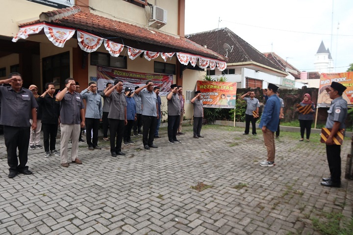Menandai kesiagaan tersebut, Bawaslu Kabupaten Blitar gelar Apel Patroli Pengawasan Hak Pilih, Senin (27/2) di halaman kantor Bawaslu Kabupaten Blitar Jalan Ahmad Yani 42, Kota Blitar.