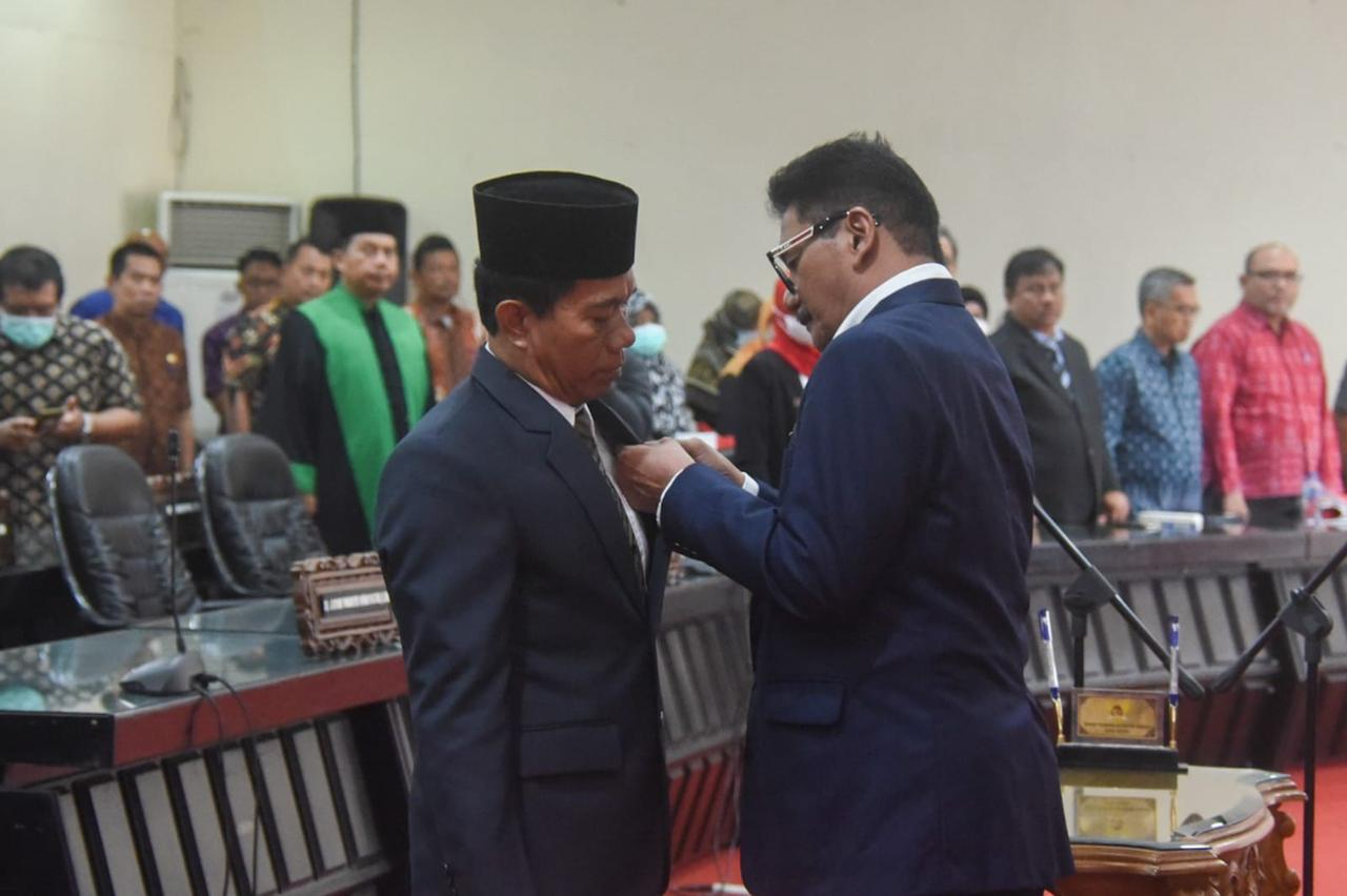 SURABAYAPAGI.COM, Kediri - DPRD Kota Kediri melakukan Pengganti Antar Waktu (PAW) masa jabatan 2019-2024 kepada salah satu anggotanya karena telah meninggal dunia. Nama anggota DPRD Kota Kediri yang telah meninggal dunia tersebut Mudjono dari Partai Hanura digantikan dengan Pujiono dari Partai Hanura, Kamis (12/1/2023).