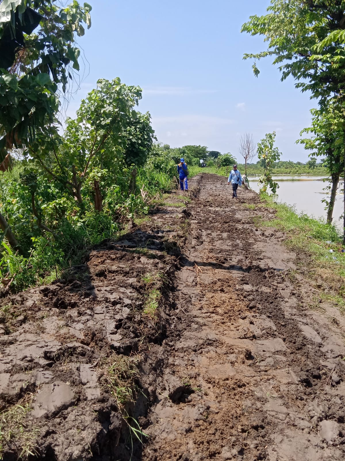 Kembalinya tanggul jebol di kali Plalangan kata Muslimin, terjadi pada pukul 03.00 WIB. Ia juga menyebut, tanggul itu jebol sepanjang 7 meter dan 6 meter. Alhasil, air dari Kali Plalangan itu pun meluber ke Bengawan Jero.