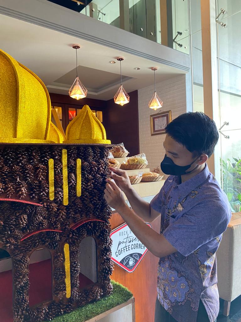 Miniatur Masjid Buah Pinus Kering tersebut, terbuat dari 500 buah pinus kering, dengan tinggi 1 meter, dan lebar 70cm. Miniatur masjid ini juga dilengkapi dengan menara. Waktu pengerjaan miniatur sekitar 2 minggu. Miniatur Masjid tersebtu akan ditampilkan dari tanggal 17 Maret 2023 hingga 30 April 2023. Terinspirasi dari buah pinus yang memiliki batang lurus dan tinggi seolah berlomba mencapai langit, maka simbol yang melekat yakni melambangkan keteguhan hati untuk mencapai cita-cita dan ambisi setinggi mungkin. Sehingga jika dikaitkan dengan makna bulan suci Ramadhan yakni, di mana umat Islam berlomba untuk mencapai pahala setinggi dan sebanyak mungkin, namun harus memiliki keteguhan hati dalam menjalankan ibadah puasa di bulan Ramadhan. “Melihat makna dari buah pinus tersebut, Luminor Hotel Jemursari Surabaya berinisiatif untuk membuat suatu dekorasi Ramadhan berupa miniatur masjid yang terbuat dari buah pinus kering, buah pinus kering memiliki karakteristik yang khas, mulai dari bentuk dan warna nya, di mana bentuk dan warna nya sangat cocok apabila dikombinasikan dengan nuansa dan tema Luminor Hotel bergaya rustic modern. Selain dekorasi berupa miniatur masjid, akan ada dekorasi photobooth lainnya yang dapat digunakan para tamu saat berkunjung ke Luminor Hotel untuk berswafoto bersama.” Ujar Yosi Arivianto selaku General Manager Luminor Hotel Jemursari Surabaya.