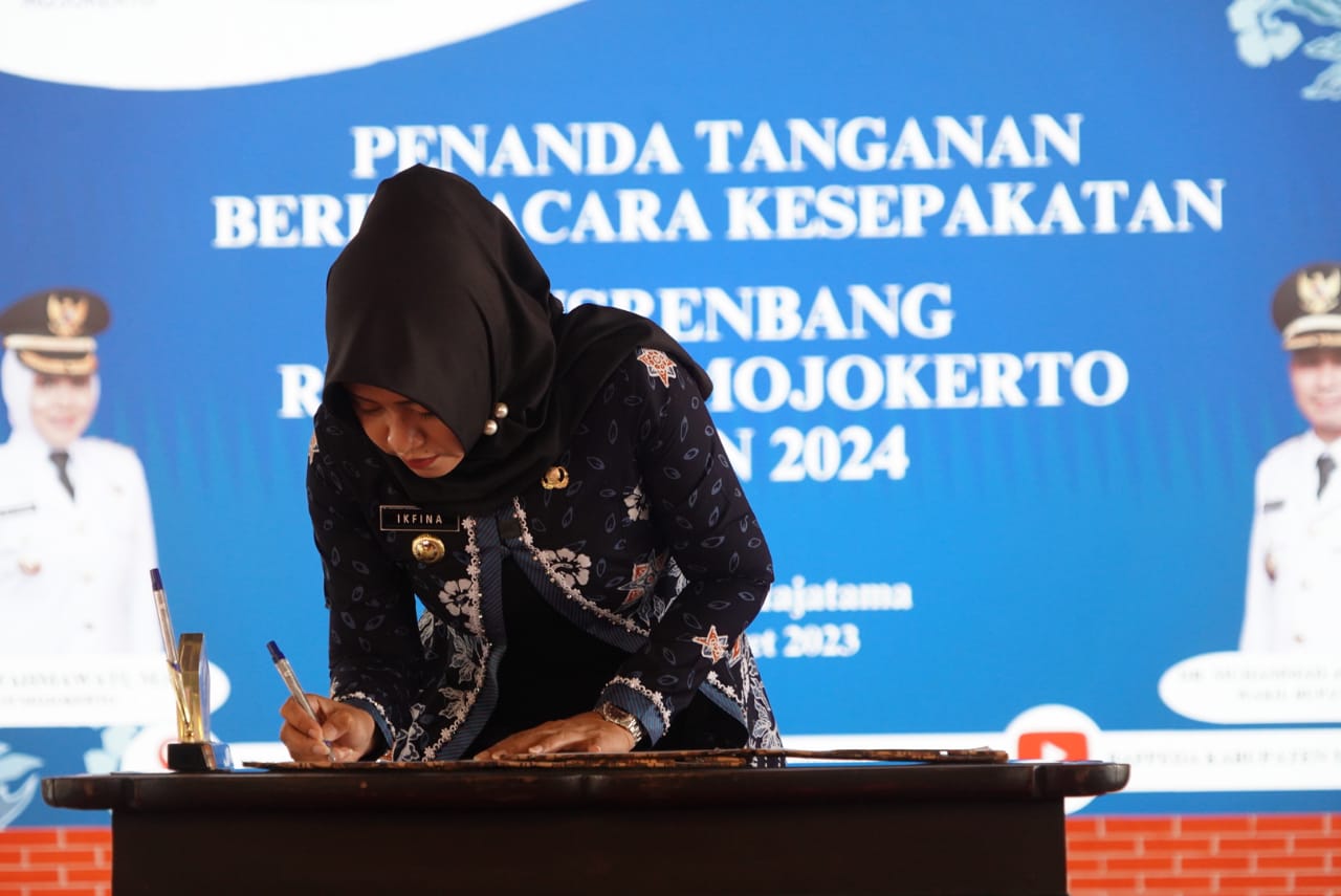 Bupati Ikfina menyampaikan, terdapat delapan isu strategis yang perlu diselesaikan dan mendapatkan prioritas dalam membangun Kabupaten Mojokerto tahun 2024 nanti.