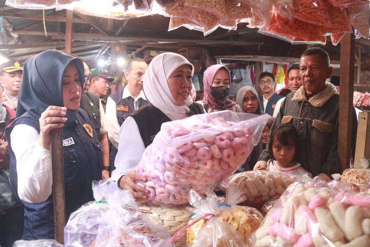 SURABAYAPAGI.COM, Mojokerto - Untuk memastikan suplai harga kebutuhan pokok aman dan terkendali, khususnya di bulan Ramadhan ini, Gubernur Jawa Timur Khofifah Indar Parawansa bersama Bupati Mojokerto Ikfina Fahmawati melakukan sidak pasar ke pasar rakyat Kedungmaling, Sooko dan Pasar Raya Mojosari.