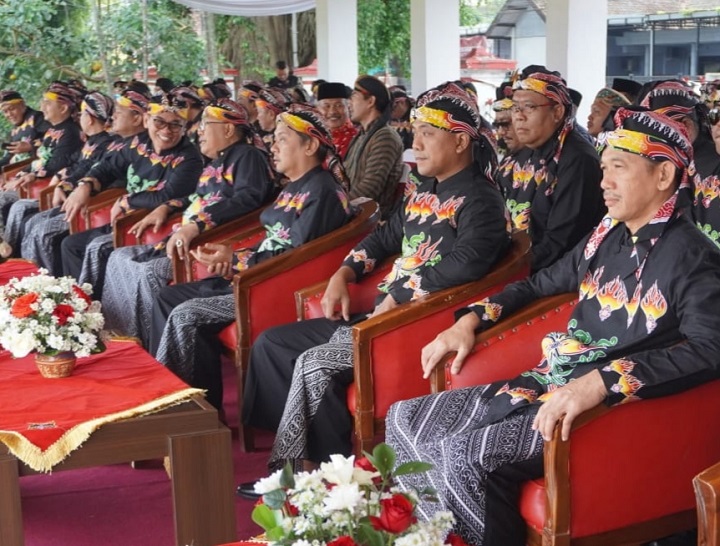 Upacara yang digelar sekitar dua jam itu peserta upacara begitu semarak dan khidmat mengikuti acara demi acara dengan berseragam Batik bercorak Puspadahana, perpaduan warna Kuning gading dan hitam.