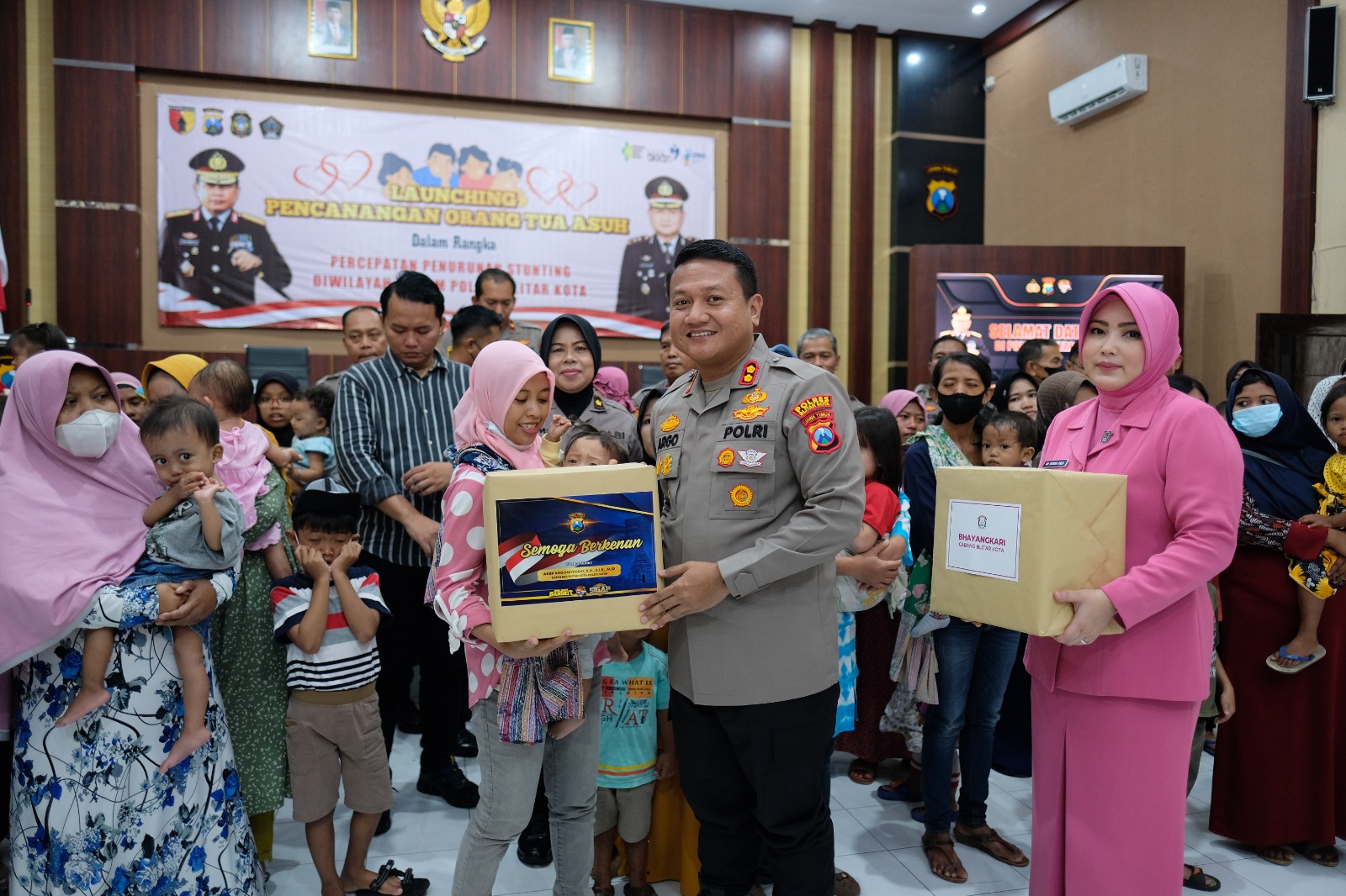 SURABAYAPAGI.COM, Blitar - Kapolres Blitar Kota AKBP Argowiyono SH S.IK M.Si melaunching orang tua asuh bagi anak penyandang Stunting di gedung Patria Tama Polres Blitar kota Kamis (6/4) guna membantu perkembangan balita penyandang Stunting.