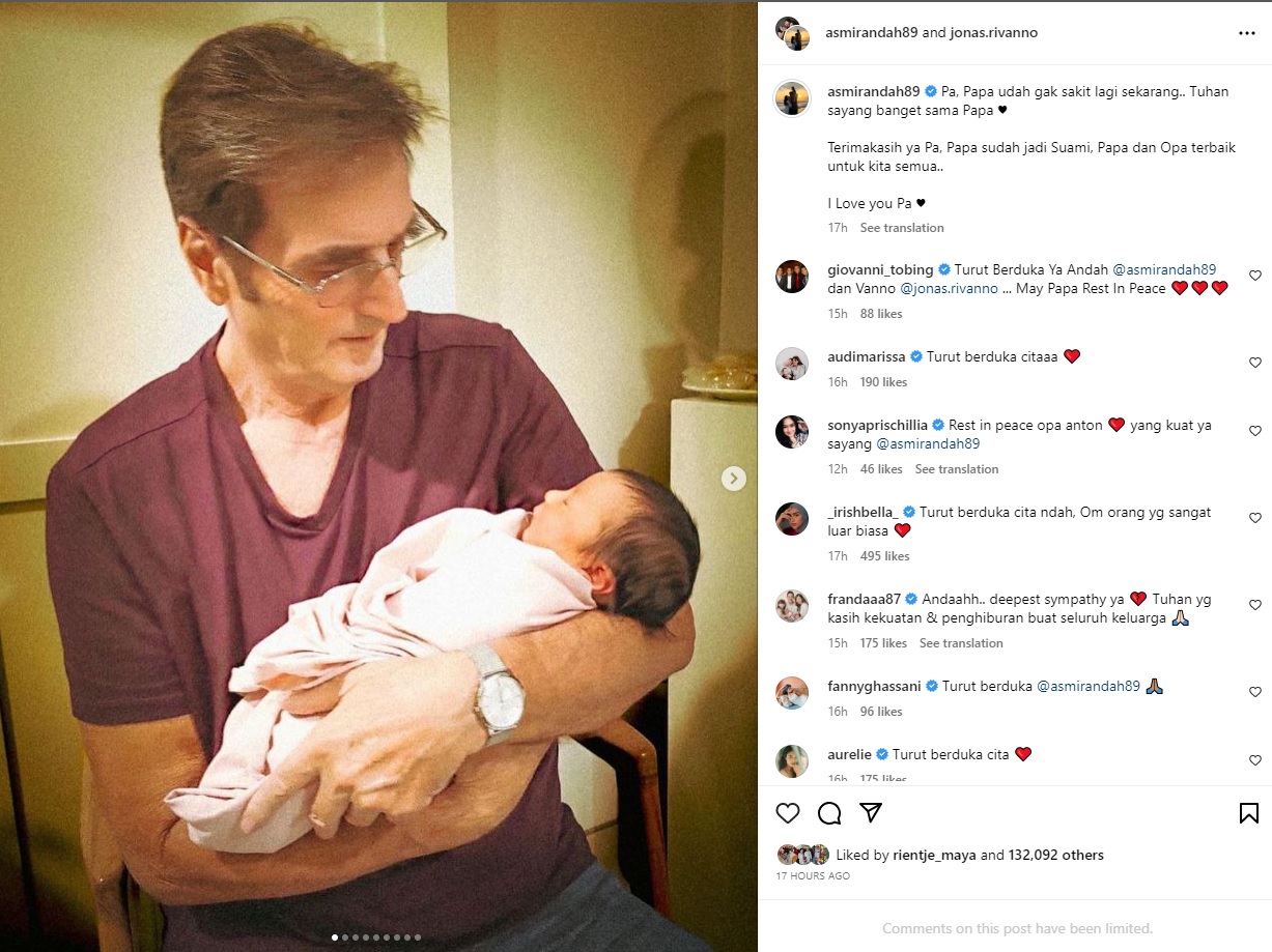 Dalam unggahan itu, Asmirandah juga membagikan beberapa foto kebersamaannya dengan sang ayah. Ada juga momen Anton bermain dengan anak Asmirandah.