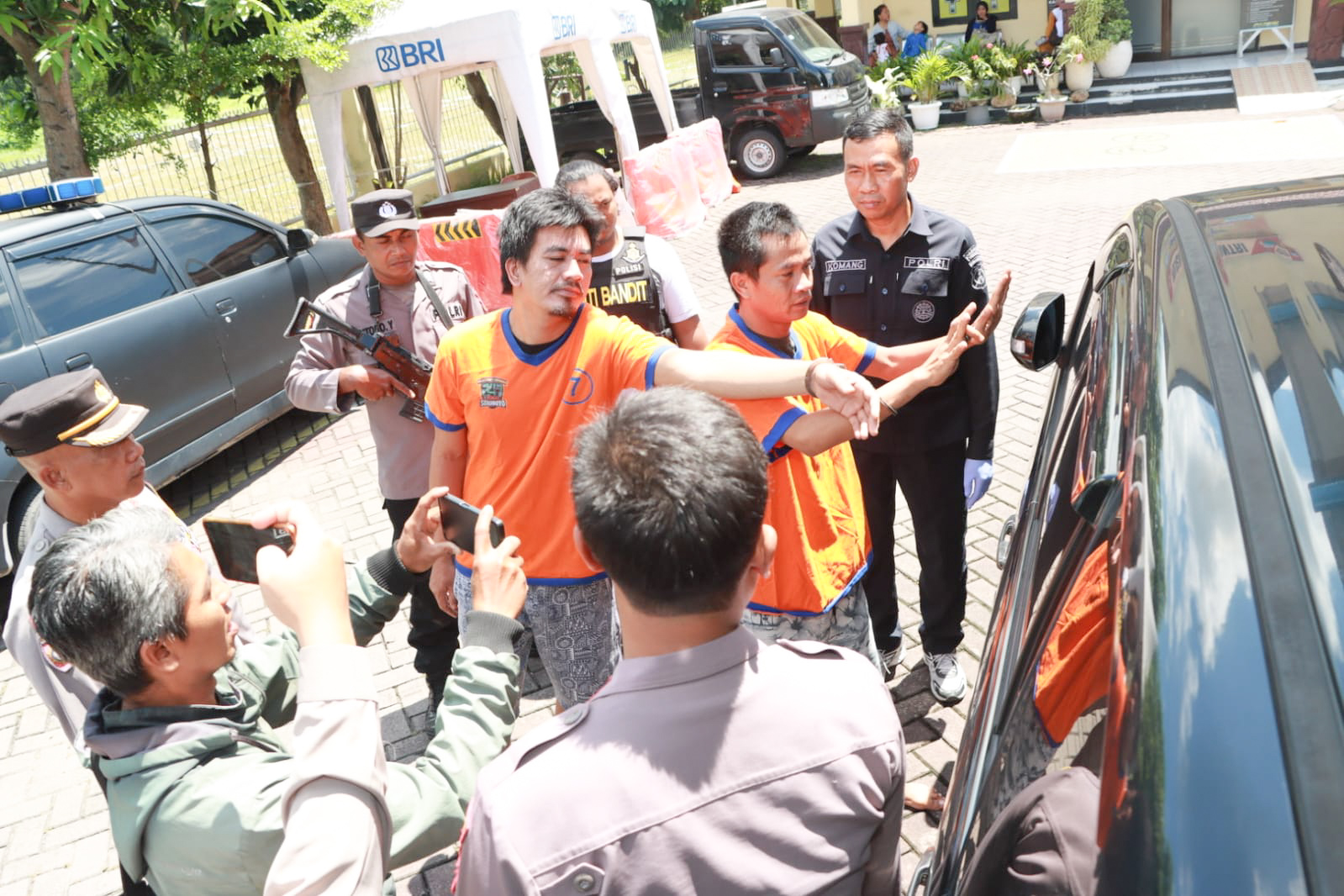 "Setelah sebelumnya melakukan pengamatan tersangka EB yang bertugas sebagai eksekutor turun dari motor dan mendekat ke pintu kiri depan dari mobil HRV tersebut," jelas Hakim.