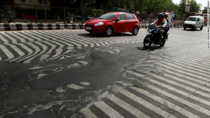 Kondisi aspal yang meleleh ini pun sempat terjadi pada Mei 2015. Saat itu suhu udara mencapai 45 derajat celcius sehingga jalanan di India pun menjadi meleleh. Sebagian besar jalan di New Delhi menjadi rusak, aspal yang meleleh menyebabkan jalanan rusak dan zebra cross pun terlihat berantakan. Kerusakan jalan itu bahkan memicu kemacetan lalu lintas. dsy/dc/rpb/vva
