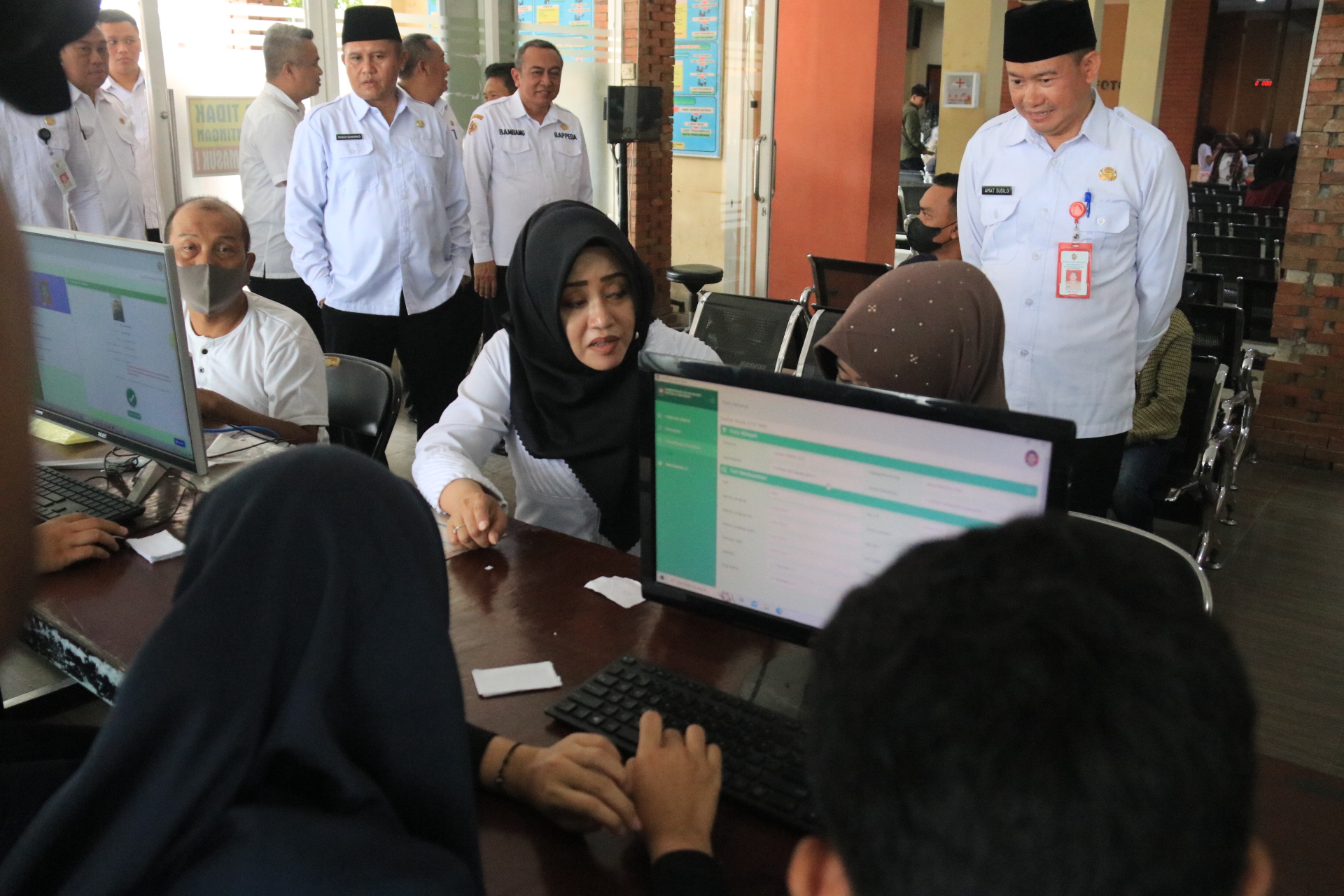 Bupati Ikfina juga menyapa langsung masyarakat dan meninjau absen dan melihat daftar hadir pegawai di aplikasi Presensi ASN Berbasis Teknologi Informasi (PRASASTI), yang merupakan sistem presensi berbasis GPS yang menggunakan sistem android sebagai pengganti mesin finger print.