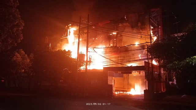 Mal tua yang memiliki tiga lantai dan 63 stan itu seluruhnya habis terbakar. Selain itu, terlihat para pemilik stan juga masih terus menunggu di luar mal.