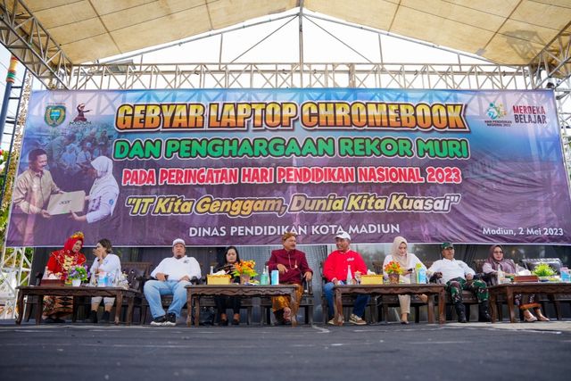Wali Kota menambahkan setidaknya sudah memberikan 14 ribu lebih laptop kepada pelajar. Yakni, untuk pelajar kelas 4 sampai kelas 9. Sebanyak 9.400 unit di antaranya diberikan di 2023 in dan tercatat dalam rekor MURI sebagai pemrakarsa dan penyelenggara pembagian laptop chromebook terbanyak. It melengkapi sejumlah rekor lain yang sudah pernah diukir Kota Madiun. Ani/Aan