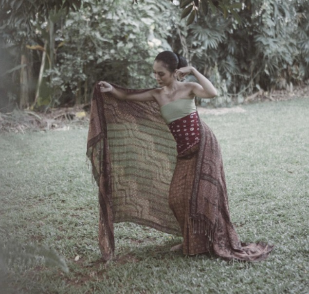 Dayinta Melira juga memiliki gaya yang super stylish seperti anak muda. Seperti dalam potret di atas, Dayinta tampil menawan dengan tank top putih yang dipadu dengan kain hijau aksen batik yang menutupi bagian bawahnya.