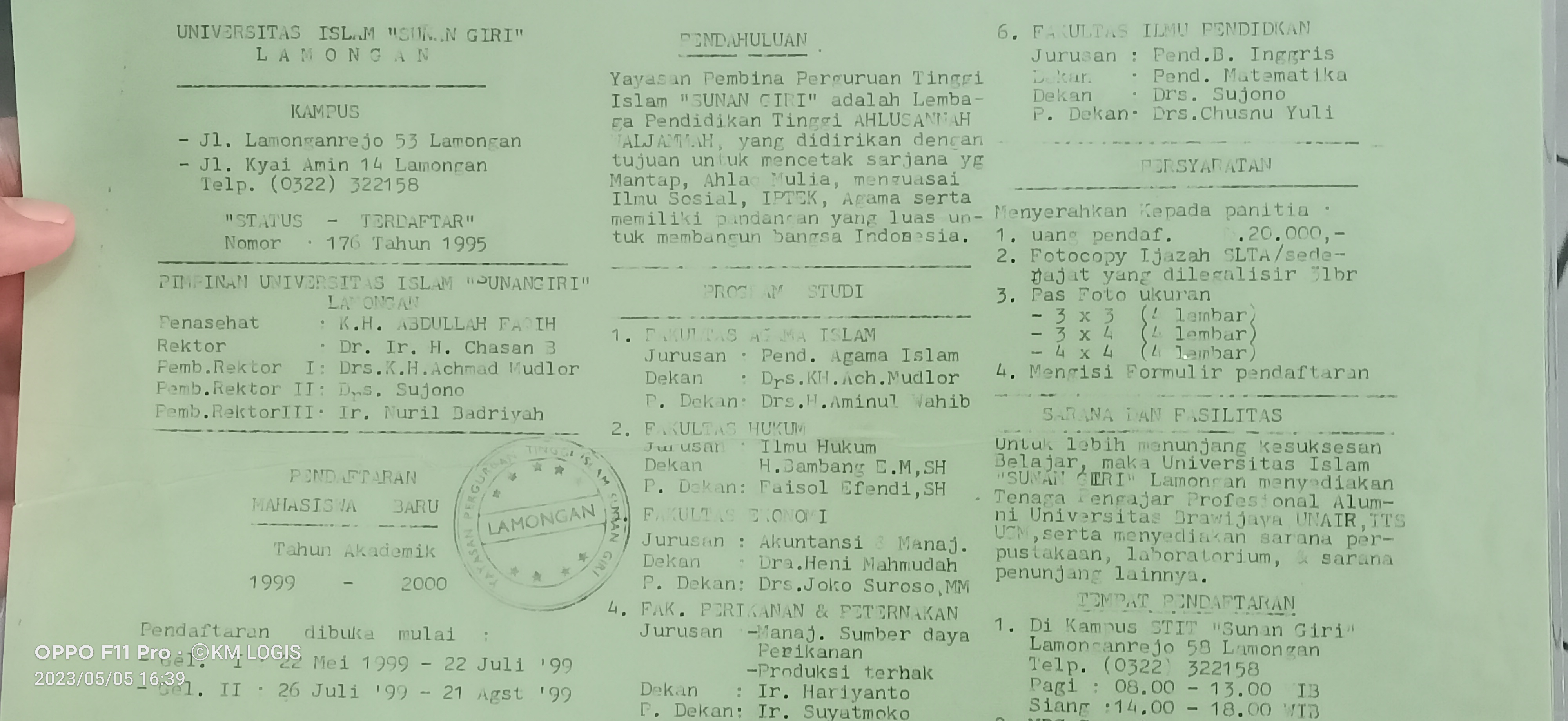 "Maaf saya informasikan bahwa keterangan dari kuasa hukum kami bahwa 10 menit yang lalu dicek di Kemenkumham bahwa ketua YPPTI Sunan Giri adalah pak Wardoyo, masyarakat luas agar tahu duduk permasalahan," ungkap Nuril panggilan akrab saudara pendiri Unisla Hasan Bisri Rektor pertama tahun 1999.