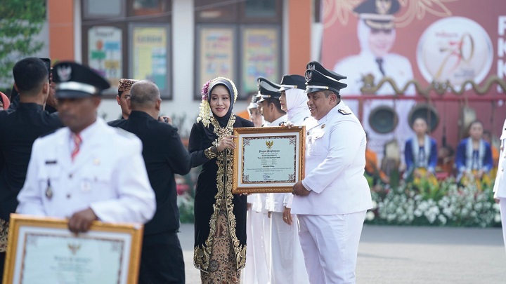 Dalam momen ini bupati juga memberikan penghargaan kepada instansi pemerintah dan kepala desa dalam mendukung program pemerintah Kabupaten Mojokerto untuk maju lebih cepat.