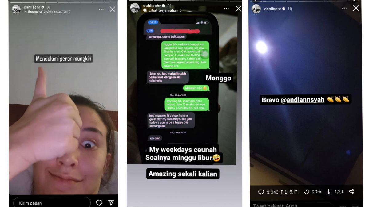"Makasih banget kamu udah peduli udah sayang sama aku. Thanks a lot. Nggak bawel nggak ikut campur. You make me feel better dan tadi bisa aku nahan dan diem saja depan banyak orang. Aku sayang kamu," tulis Fandy dalam isi percakapan tersebut yang dikutip dari Instagram Stories Dahlia Poland pada Senin (15/05/2023).
