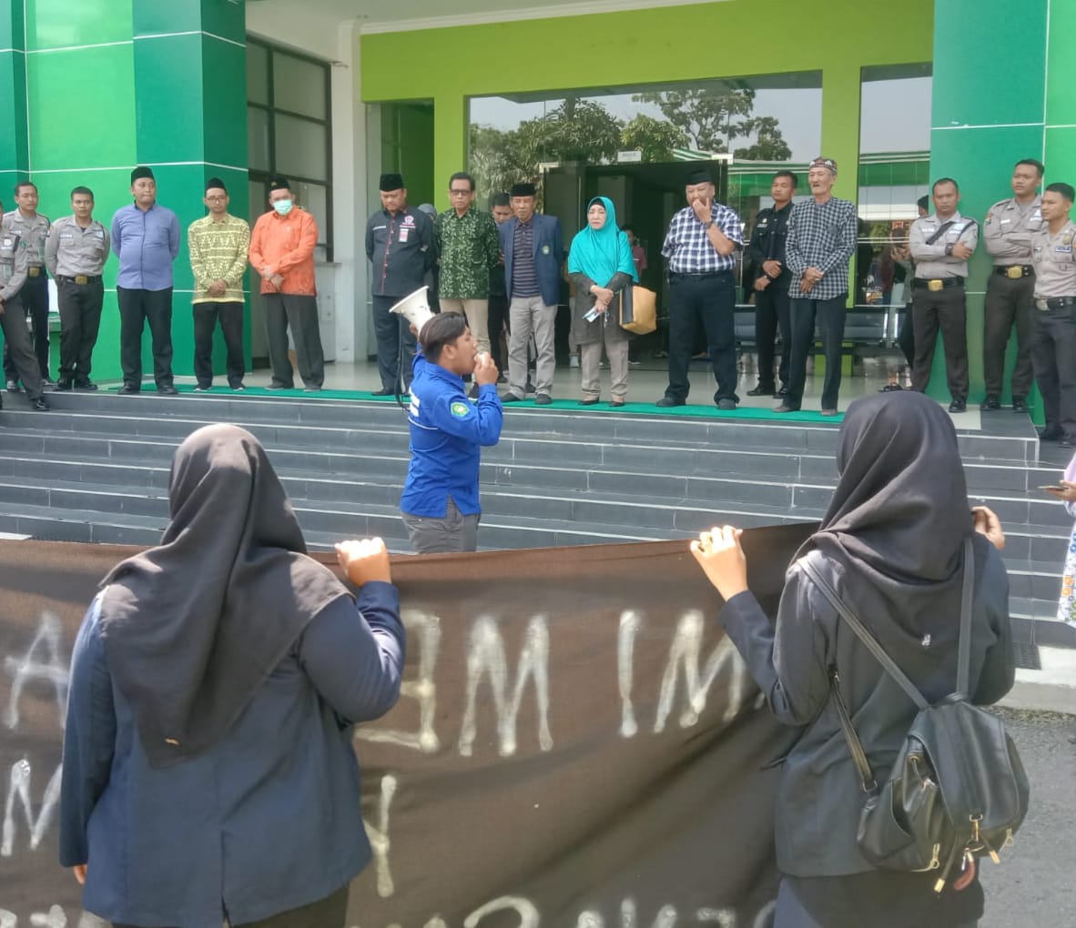 Sebelum berbicara di depan para mahasiswa, mereka mendengarkan orasi dan tuntutan perwakilan mahasiswa yang disampaikan secara bergantian.
