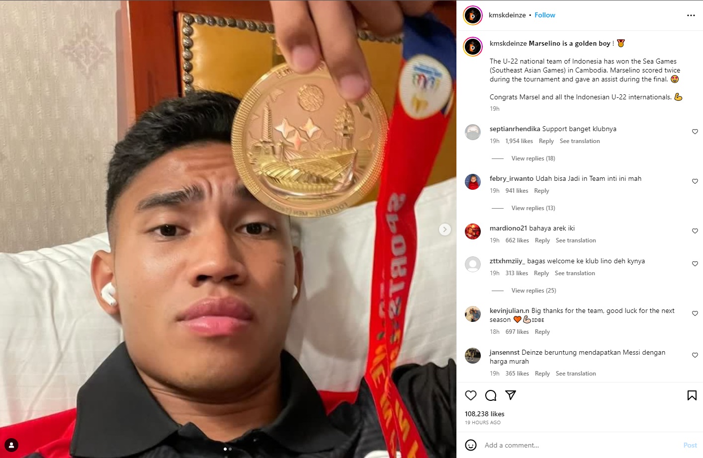 “Marselino mencetak dua gol selama turnamen dan memberikan assist di laga final. Selamat Marsel dan seluruh pemain Timnas Indonesia U-22,” lanjut bunyi unggahan tersebut.
