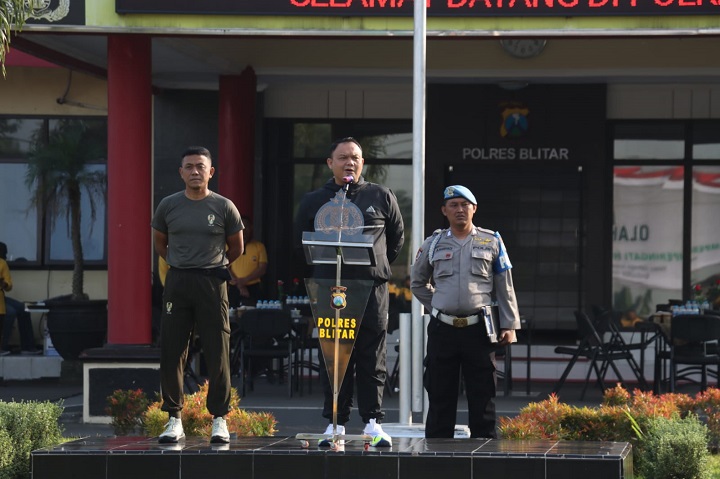 Dalam kesempatan itu Kapolres Blitar AKBP Anhar Arlia Rangkuti, S.I.K, menyampaikan dan menegaskan dalam sambutannya, bahwa melalui kegiatan olahraga bersama ini sekaligus menunjukkan kepada masyarakat bahwa TNI-POLRI hadir sebagai garda terdepan dalam menjaga keamanan dan ketertiban negara.