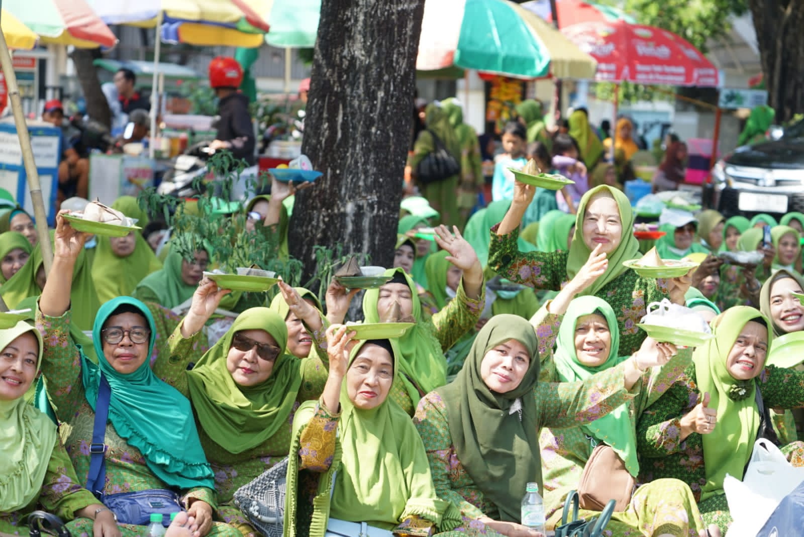 SURABAYAPAGI.com, Sidoarjo - Parkir Timur GOR Sidoarjo menjadi saksi perayaan Harlah ke-77 Muslimat NU. Makan kupang lontong bersama yang digelar dalam Harlah Muslimat NU tersebut pecahkan Museum Rekor Indonesia (MURI) pada Minggu (28/05/2023).