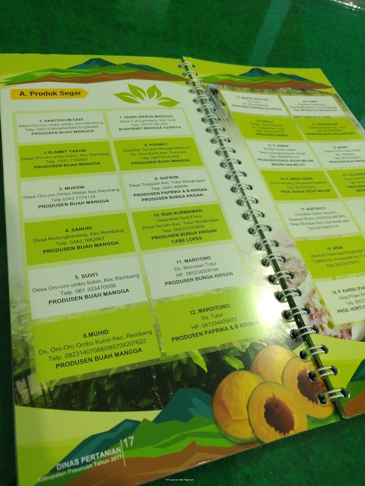 Menurutnya, buku yang dicetak sampai ribuan dan dibagikan di setiap event Pemkab Pasuruan tersebut diharapkan dapat menjadi etalase bagi para petani di Kabupaten Pasuruan untuk menciptakan ceruk pasar baru. Sekaligus membangun kepercayaan publik terhadap sistem penjualan online yang ditawarkan masing-masing petani. Yang sekarang sedang kami gencarkan, bagaimana merubah mindset petani kita, dari yang sebelumnya masih konvensional menjadi petani digital yang lebih berdaya saing.