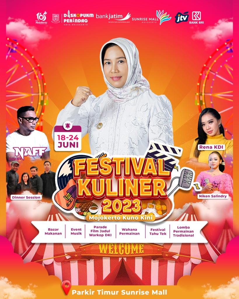Masih kata Ani, Mojo Shop Fest 2023 juga mencakup didalamnya Festival Kuliner 2023. Event bertema 'Mojokerto Kuno Kini' ini akan digelar mulai tanggal 18 hingga 24 Juni di Parkir Timur Sunrise.