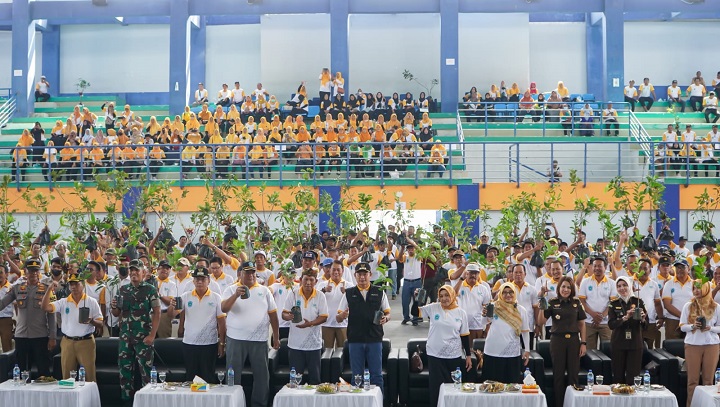 “Setiap orang sudah memegang pohon-pohon, ada pohon buah, pohon lindung, dan ini menjadi kewajiban kita sepulang dari sini, pohon itu ditanam, dirawat, disayang, kalau perlu diberi nama, agar menjadi tanggung jawab untuk merawatnya. Terutama pohon buah-buah yang terus kita galakan untuk penanganan stunting,” ujar Bupati Yes.