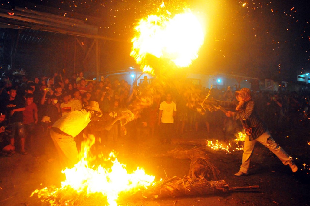 Peragaan perang obor tersebut benar-benar memanfaatkan kobaran api yang diikuti 40 peserta dengan 350 obor dijadikan alat perang. Walau terkesan seram dan berbahaya, obor-oboran memiliki tujuan yang mulia.