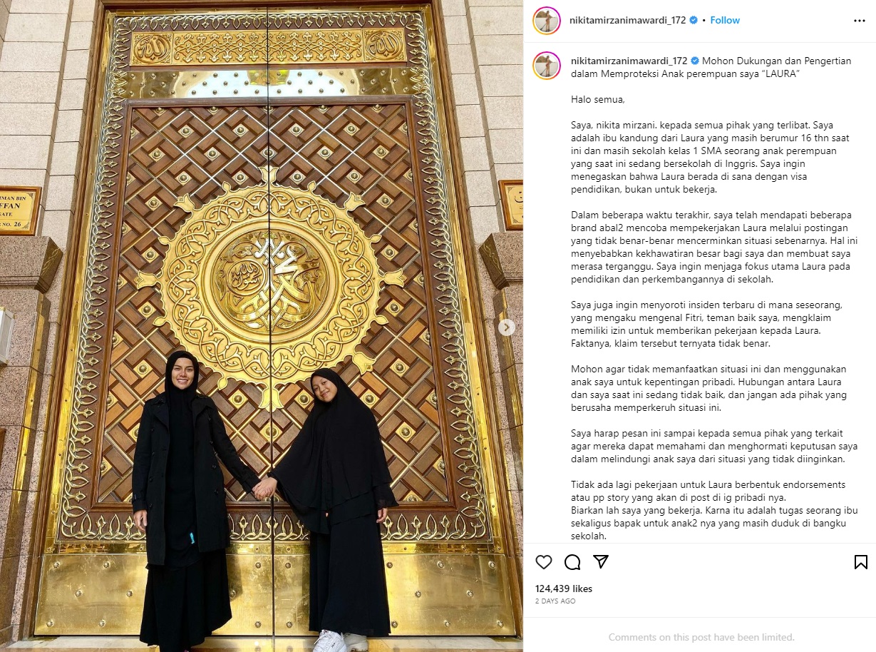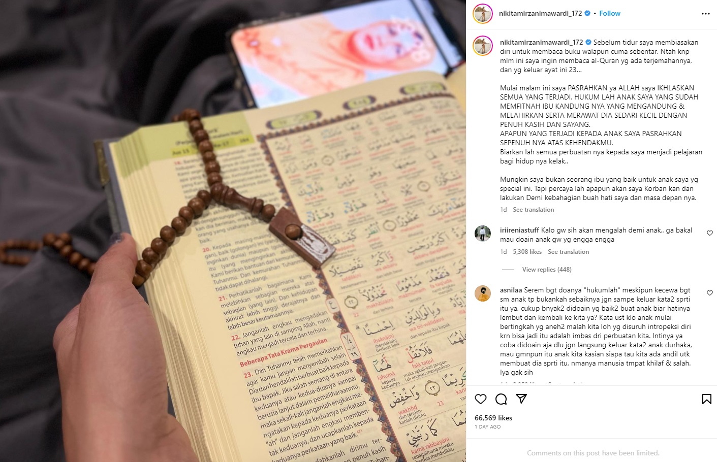 Sebagai seorang ibu, Nikita Mirzani mengaku ikhlas sang anak mengumbar aib dirinya di masa lalu. Namun, melalui unggahan terbaru Nikmir di Instagramnya, dirinya sempat mendoakan sang anak agar mendapat hukuman dari Allah.