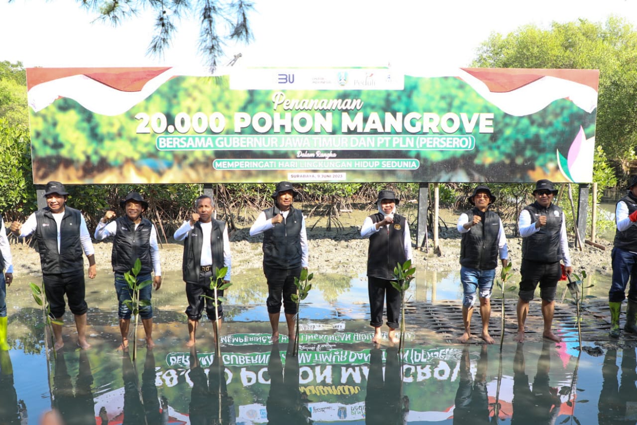 Upaya Transisi Energi dan Kurangi Co2, PLN Bersama Gubernur Jatim Gelar Konvoi Molis dan Tanam 20 Ribu Mangrove