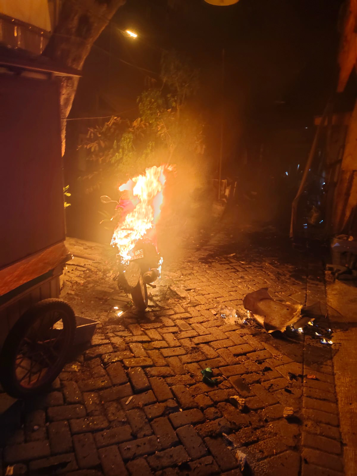 SURABAYAPAGI.com, Surabaya - Peristiwa kebakaran hebat terjadi di Jalan Ngagel Wasana Kalimat VI No. 1-A , Kelurahan Baratajaya, Kecamatan Gubeng, Kota Surabaya di sebuah objek rumah pada Minggu malam (11/06/2023). Akibatnya, rumah di lantai dua dan kendaraan motor Mio J hangus terbakar.
