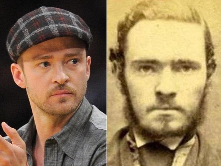 - Penyanyi Justin Timberlake sangat mirip dengan pria di masa silam yang dijepret di sebelah kanan