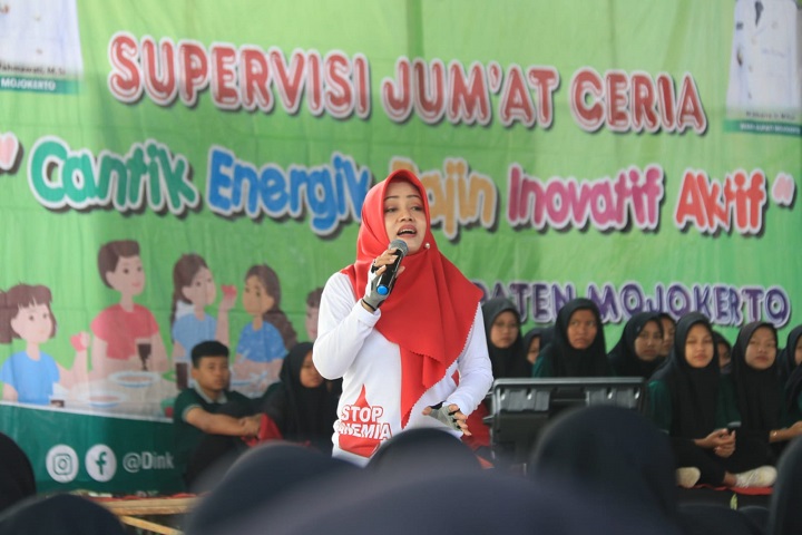 SURABAYAPAGI.COM, Mojokerto - Bupati Mojokerto Ikfina Fahmawati terus mengkampanyekan minum Tablet Tambah Darah (TTD) secara serentak, agar remaja putri (Rematri) yang ada di Bumi Majapahit dapat terhindar dari anemia.