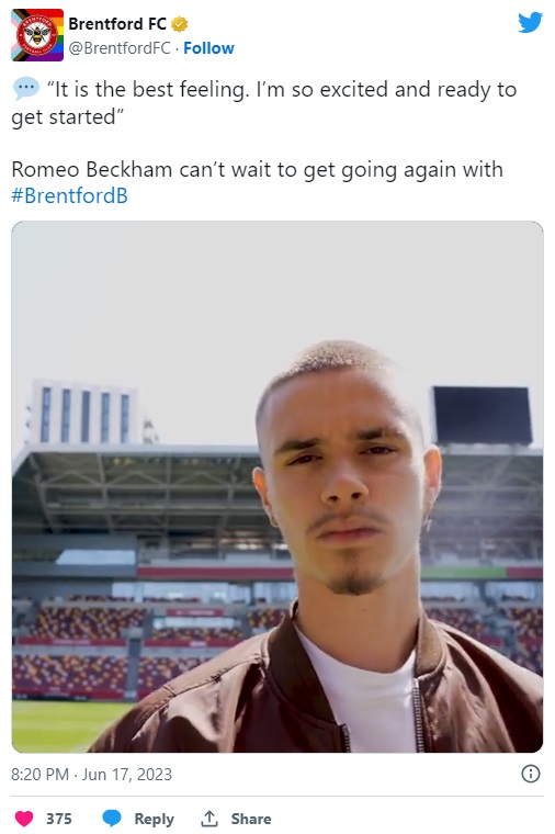 Sementara itu, Romeo sendiri mengaku senang di Brentford. Ia merasa disambut dan punya pengalaman lebih menantang ketimbang di Miami. "Sejujurnya ini perasaan terbaik. Saya sangat senang. Mereka menyambut saya sejak hari pertama, saya menyukai setiap detik di sini," kata Romeo.