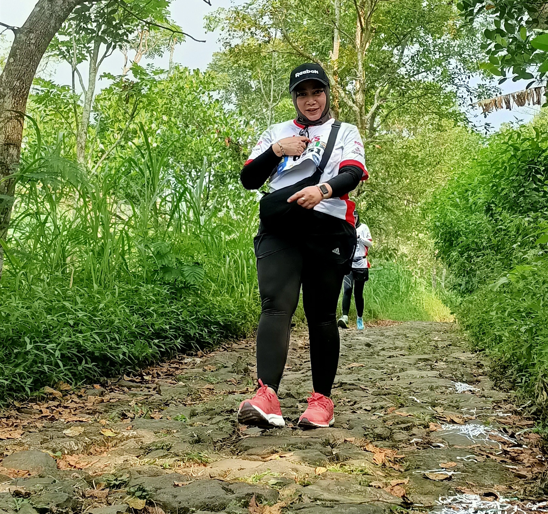 Wanita berparas ayu ini tampak antusias mengikuti 5 K Family Run. Meskipun ini baru pengalaman pertama berlari di etape naik turun pegunungan, namun ia tak terlihat terlalu kesulitan menempuhnya. Terbukti, ia berhasil mencapai garis finish dengan catatan waktu sekitar hampir 150 menit