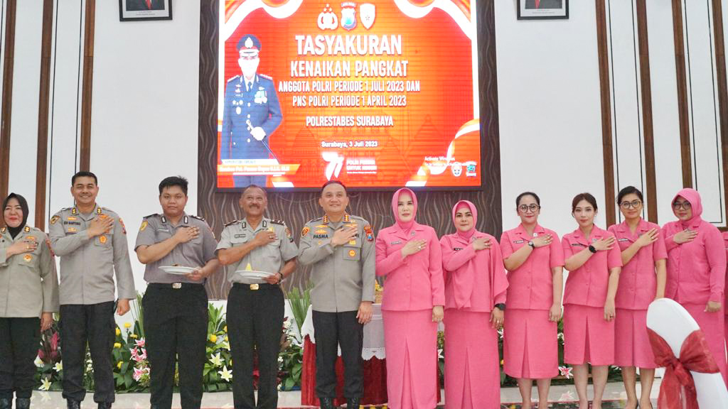 Acara yang berlangsung meriah ini diadakan di Gedung Bhara Daksa Polrestabes Surabaya untuk memberikan penghargaan kepada anggota Polrestabes yang berhasil naik pangkat berkat dedikasi dan kerja keras mereka.