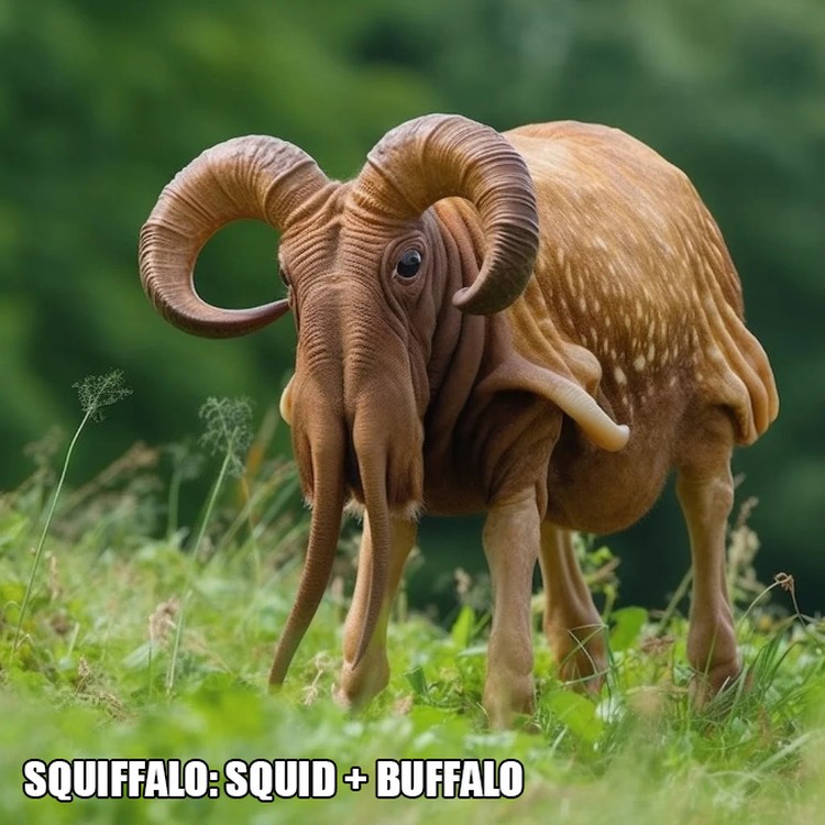 - Squiffalo merupakan perpaduan cumi-cumi dan kerbau.