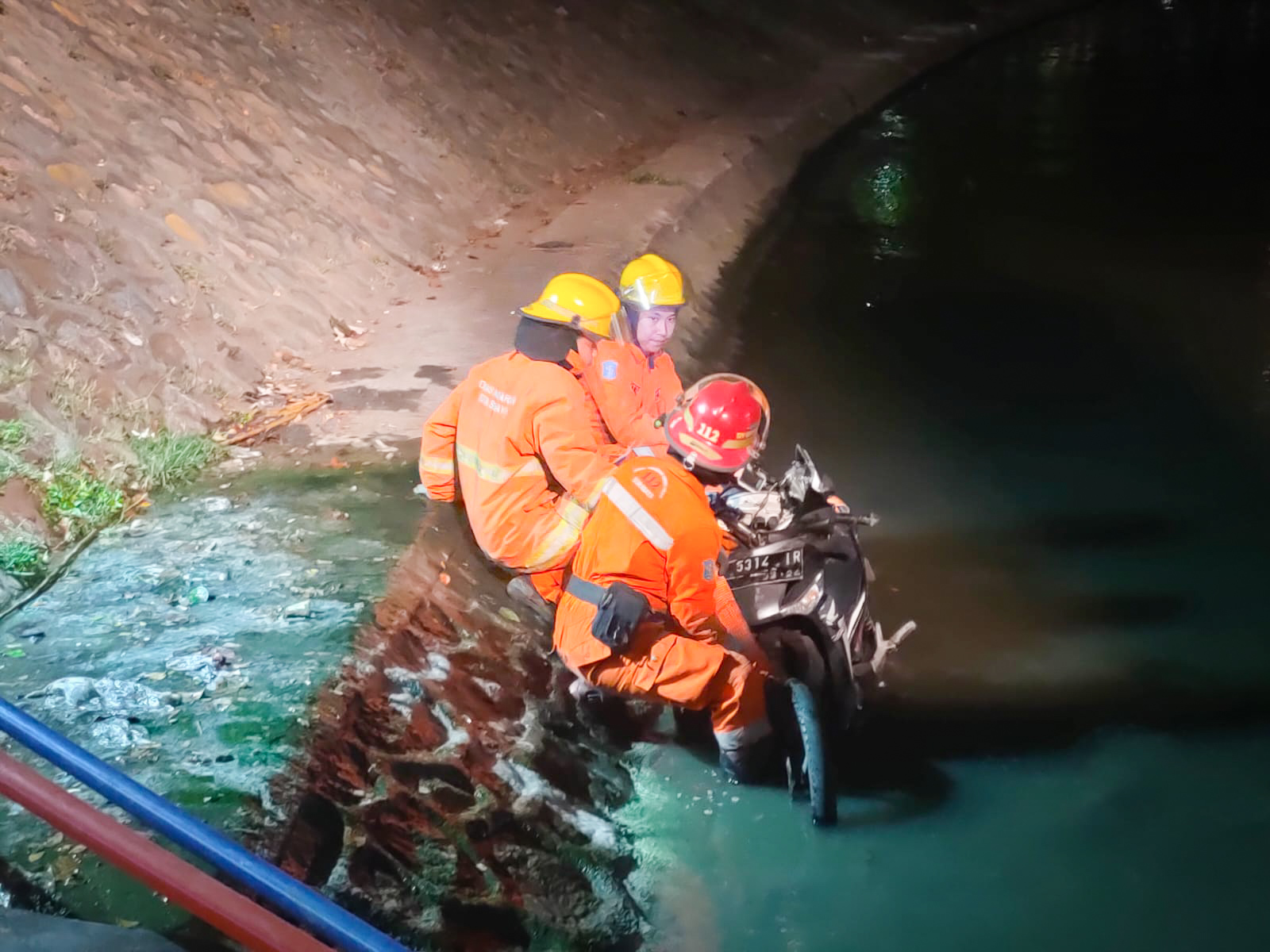 "Selanjutnya evakuasi kendaraan bermotor dari sungai dilakukan oleh Tim Rescue DPKP Kota Surabaya,” ujarnya,