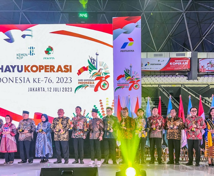 Penghargaan tersebut diserahkan langsung oleh Ketua Umum Dewan Koperasi Indonesia (DEKOPIN) Sri Untari Bisowarno kepada Bupati Yes pada acara peringatan Harkopnas 2023, di Tennis Indoor Senayan, Jakarta, Rabu (12/7/2023).