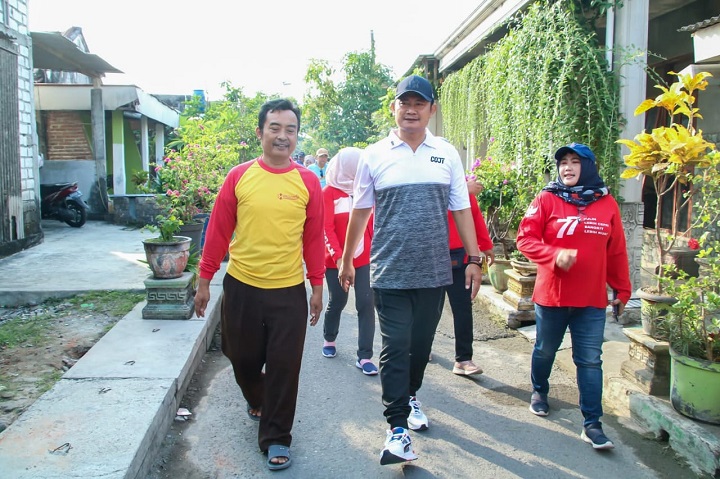 SURABAYAPAGI.COM, Lamongan - Dengan mengayuh sepeda angin, ditemani sekda dan pejabat teras, bupati Yuhronur Efendi keliling kota Lamongan sekaligus meninjau langsung kerja bakti masyarakat dalam menjaga lingkungannya menyambut Green and Clean (LGC) reborn, Jumat (28/7/2023) pagi.