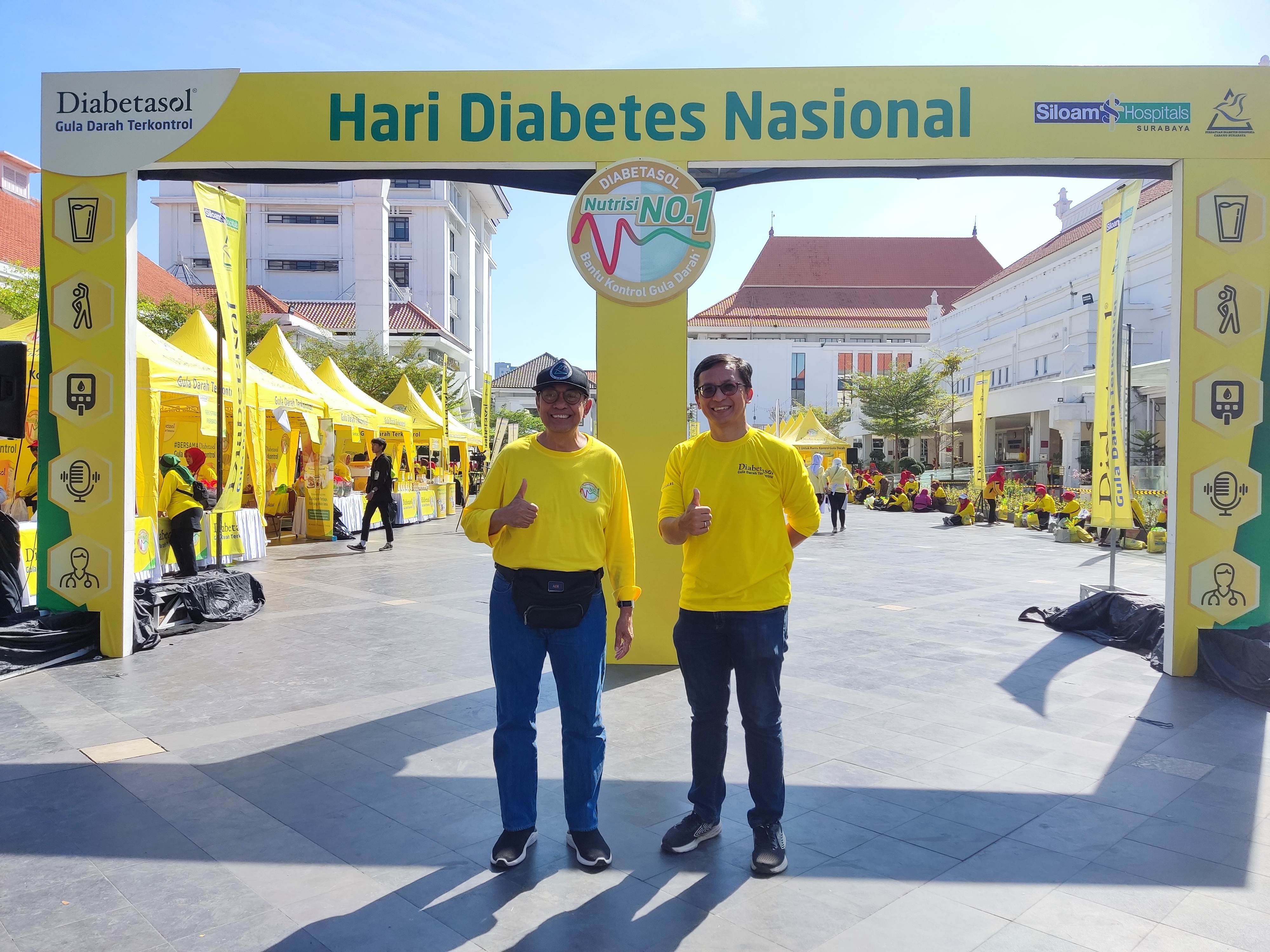 “Diabetes menjadi masalah, bahkan melihat pre-diabetes tetapi gula darahnya tidak normal itu 30�ri penduduk Indonesia dari 100%, di Surabaya sendiri 2,5% nya itu terkena diabetes. Dari anggota PERSADIA (Persatuan Diabetes Indonesia) lebih dari 10 ribu anggota. Penyakit diabetes bisa mulai dari 15 tahun dan paling banyak dari usia diatas 40 tahun, dikarenakan faktor pola hidup, pola makan, aktivitas fisik. Penyakit diabetes bisa disembuhkan namun belum ditemukan obat yang sampai menghilangkan namun bisa dikendalikan dengan diet tertentu, olahraga, obat, dan kontrol teratur. Diabetes ada lima pilar supaya bisa mengendalikan diabetes kita, yaitu: (1) edukasi, (2) pola makan sehat, (3) aktivitas fisik, (4) mengontrol kadar gula, (5) kontrol dan obat dari dokter. Penyakit diabetes dapat menggandeng penyakit lainnya yaitu hipertensi dan kolesterol bahkan komplikasi. Diabetes ada yang genetik dan ada yang bukan, yang genetik bisa diturunkan tapi belum tentu muncul tergantung dari pola hidupnya, kita bisa mencegah itu,” ujar Dr. dr. Soebagijo Adi Soelistijo, Sp. PD, K-EMD, FINASIM, FACP, Ketua PERSADIA Cabang Surabaya, yang ditemui Wartawan SurabayaPagi dalam peringatan Hari Diabetes Nasional 2023 di Alun-alun Kota Surabaya, Sabtu (29/07/2023).