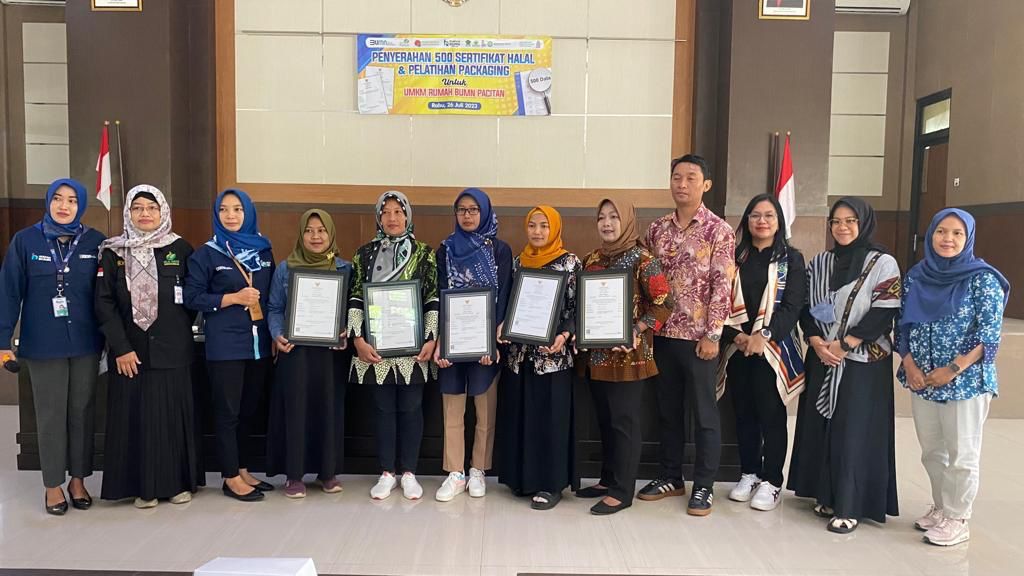 Melalui Rumah BUMN Pacitan, PLN menyerahkan sebanyak 500 sertifikat halal kepada para pelaku UMKM binaan.