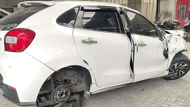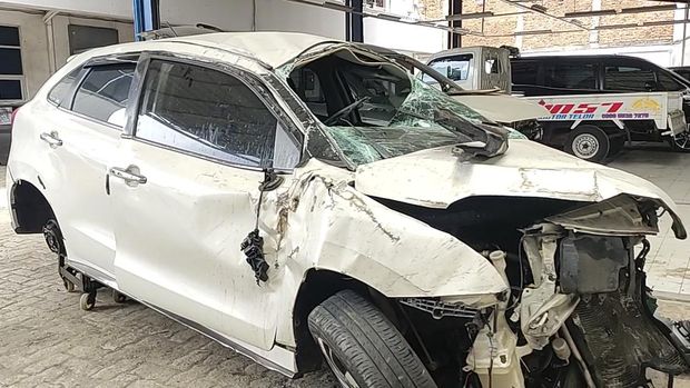 Mobil Rendy Kjaernett dan Lady Nayoan kini berada di salah satu bengkel. Melihat kondisi Baleno putih yang rusak parah, sulit membayangkan betapa mengerikannya saat kejadian kecelakaan itu.