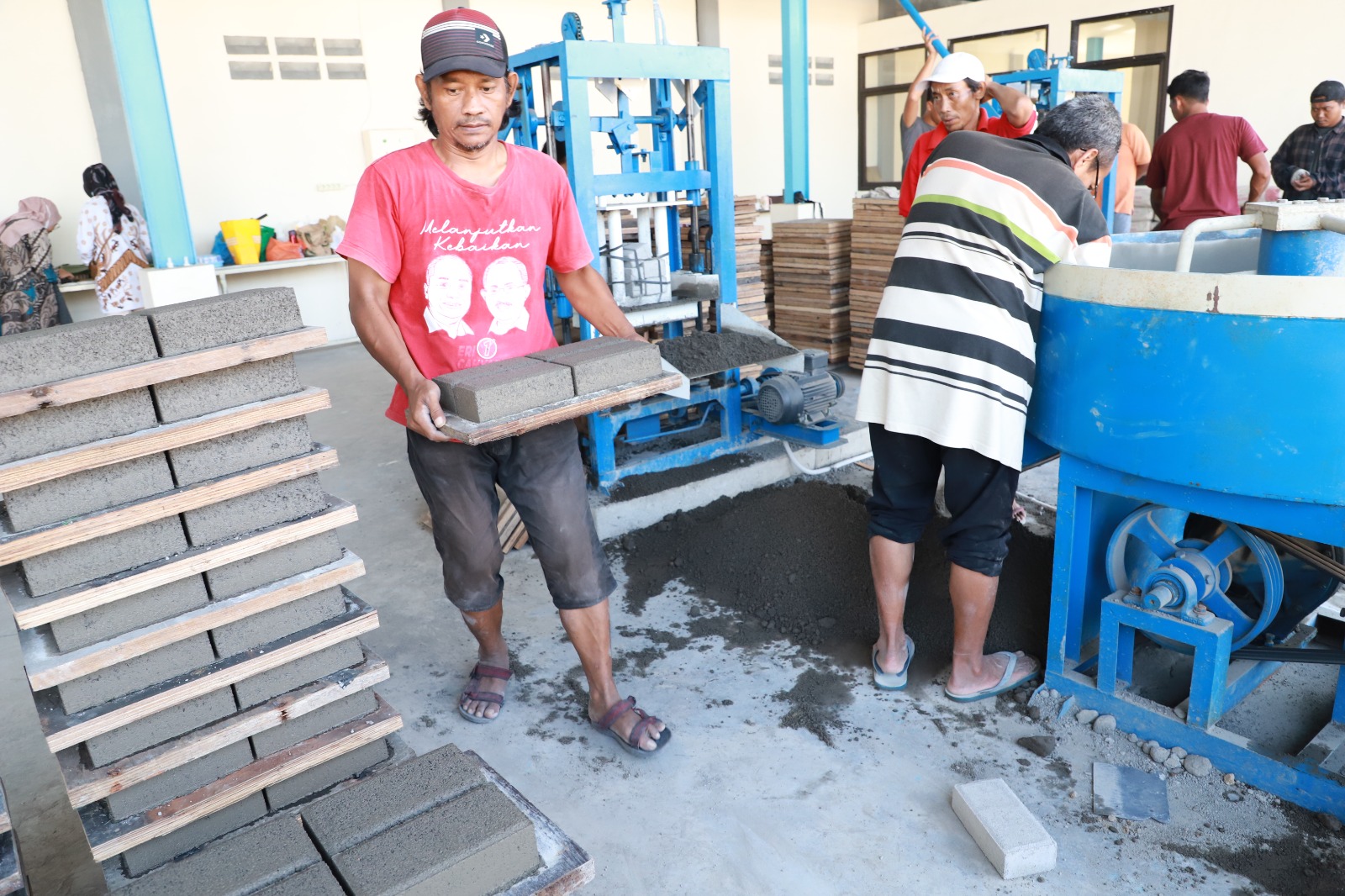 Aly menjelaskan, di pabrik tersebut terdapat dua mesin pembuat paving. Dalam satu hari, pihaknya bisa memproduksi hingga 26 meter paving. Untuk satu mesin, dikelola oleh 5 orang. Saat ini terdapat 10 pekerja disana.